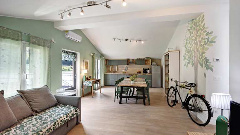 Die Mansarda Albero Verde con Piscina bietet ein einladendes Ambiente mit einem Garten und einem Aussenpool. Die klimatisierte Ferienwohnung ist mit einem TV, einer voll ausgestatteten Küche und einer Terrasse mit Blick auf die Berge ausgestattet. Ein Grill steht den Gästen ebenfalls zur Verfügung.