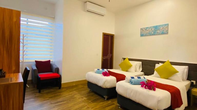 Die Unterkunft Manta Sky Inn befindet sich 600 m vom Strand Dharavandhoo entfernt und bietet einen eigenen Strandbereich sowie einen Garten.