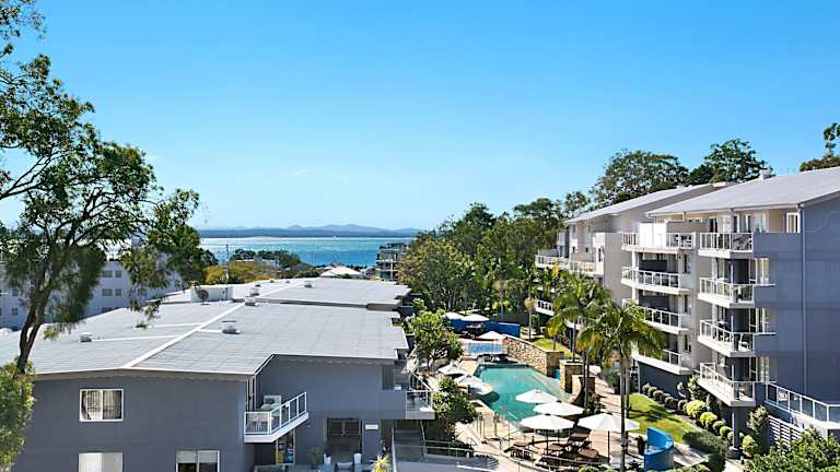 Das Mantra Aqua Resort befindet sich im Herzen von Nelson Bay, nur 800 Meter entfernt vom Nelson Bay Beach. Die Lage ermöglicht einen einfachen Zugang zu den lokalen Attraktionen und zur Natur.