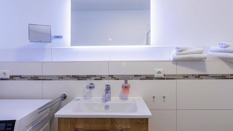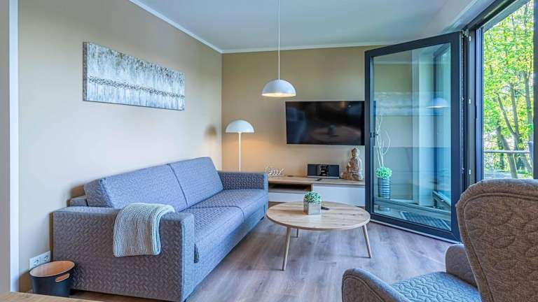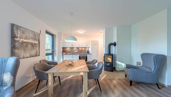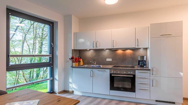Die Ferienwohnung umfasst ein Schlafzimmer, ein Wohnzimmer mit TV, eine gut ausgestattete Küche mit Kühlschrank und Geschirrspüler sowie ein Badezimmer mit Dusche. Handtücher und Bettwäsche werden zur Verfügung gestellt. Ein Balkon mit Seeblick lädt zum Verweilen ein.