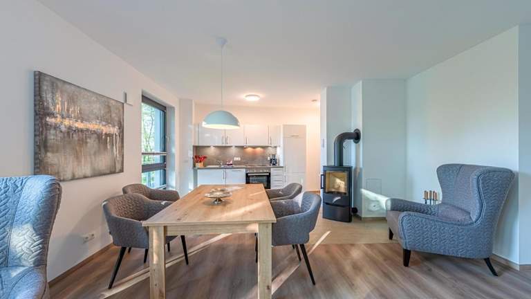 Die Mantra-Oase bietet eine gemütliche Ferienwohnung mit Seeblick, Kamin und Wellnessbereich. Zu den Einrichtungen gehören eine Sauna, ein Fitnesscenter und ein Garten mit Gartenblick. Es handelt sich um eine Nichtraucherunterkunft, in der auch Haustiere erlaubt sind. Es sind weder Junggesellen-/Junggesellinnenabschiede noch ähnliche Feiern erlaubt.