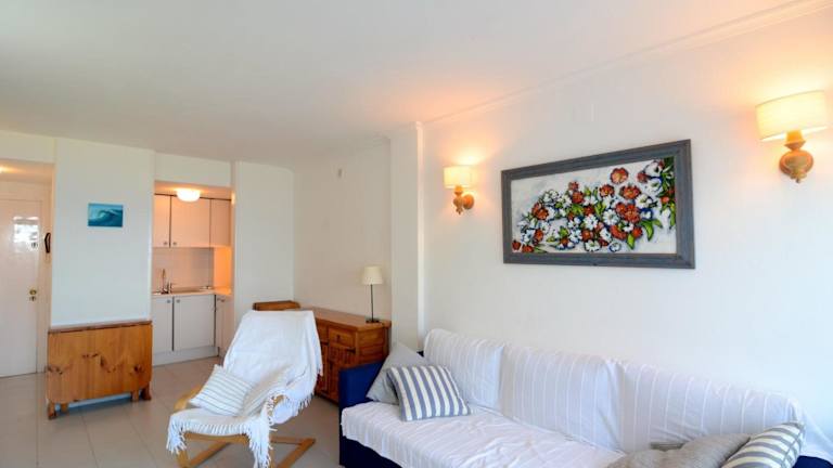 Die Ferienwohnung umfasst 1 Schlafzimmer, ein Wohnzimmer, einen TV und eine bestens ausgestattete Küche mit Kühlschrank und Mikrowelle. Zudem verfügt sie über ein Badezimmer mit Badewanne sowie einen Balkon mit Meerblick.