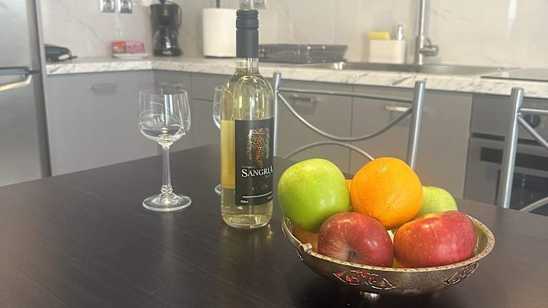 Die Unterkunft verfügt über zwei Schlafzimmer, ein Wohnzimmer, eine komplett ausgestattete Küche mit Kühlschrank und Kaffeemaschine sowie ein Badezimmer mit Dusche. Handtücher und Bettwäsche werden gestellt. Die Zimmer sind klimatisiert und schallisoliert, um eine angenehme Bequemlichkeit zu gewährleisten.
