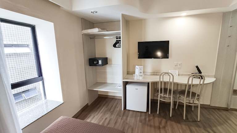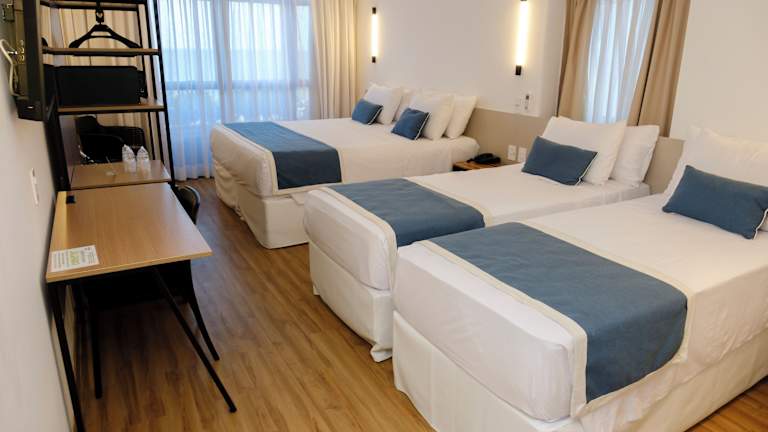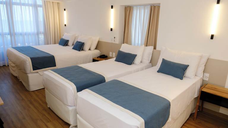 Die Zimmer sind mit einer Klimaanlage, einem Balkon oder einer Terrasse mit Meerblick ausgestattet. Jedes Zimmer verfügt über ein Doppelbett, ein Sofabett und eine Kochnische. Zur weiteren Ausstattung gehören ein Safe, eine Minibar, ein Telefon und ein TV-Gerät. In den Badezimmern stehen Dusche und Badewanne sowie ein Haartrockner zur Verfügung. Das Hotel bietet auch rollstuhlgerechte Zimmer und Nichtraucherzimmer an.