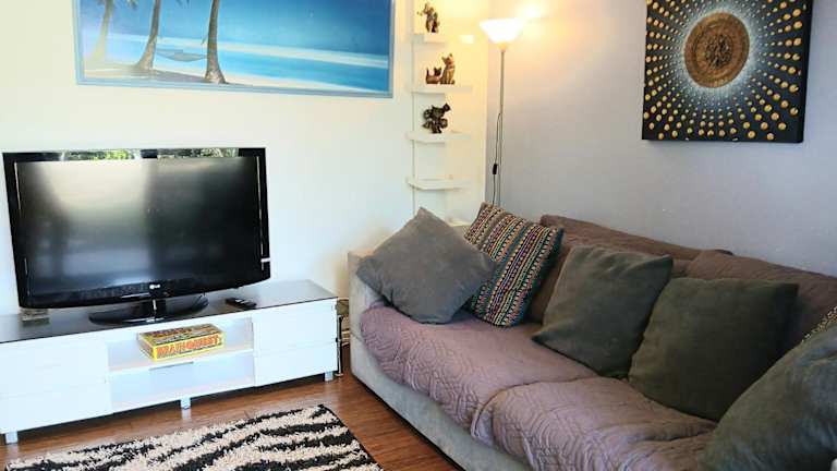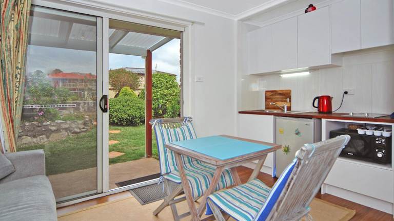 Das Ferienhaus beinhaltet ein Schlafzimmer, ein Wohnzimmer, eine voll ausgestattete Küchenzeile mit Kühlschrank und Wasserkocher sowie ein Badezimmer mit gratis Pflegeprodukten. Handtücher und Bettwäsche werden zur Verfügung gestellt, und das Haus ist klimatisiert.