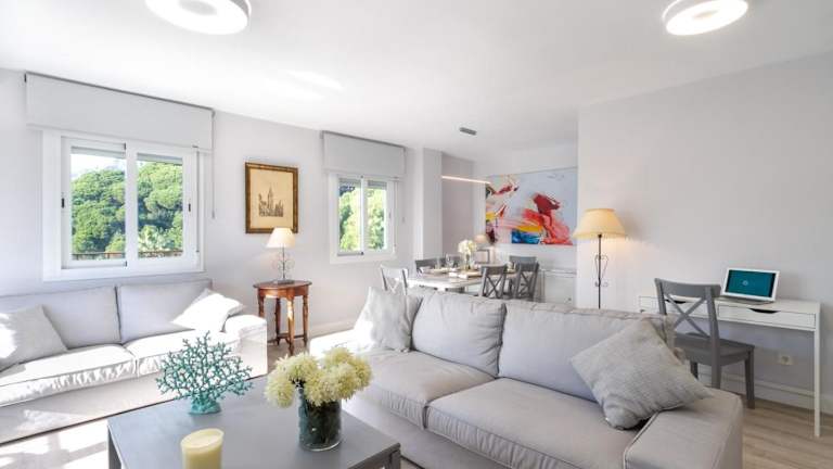 MARBELLA BANUS SUITES - Marbella Centre Soriano 56 Suite Apartment bietet kostenloses WLAN, Klimaanlage sowie Haushaltsannehmlichkeiten wie eine Kaffeemaschine und einen Kühlschrank. Es handelt sich um eine Ferienwohnung mit Meer- und Bergblick, ausgestattet mit 3 Schlafzimmern und 2 Badezimmern.