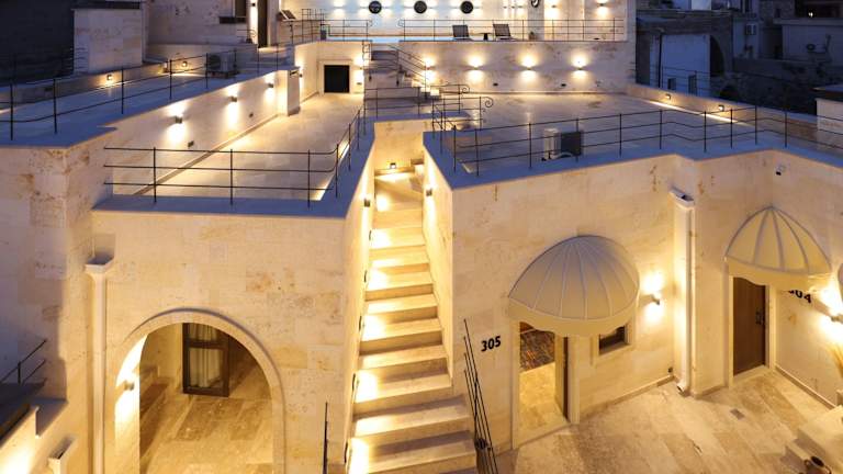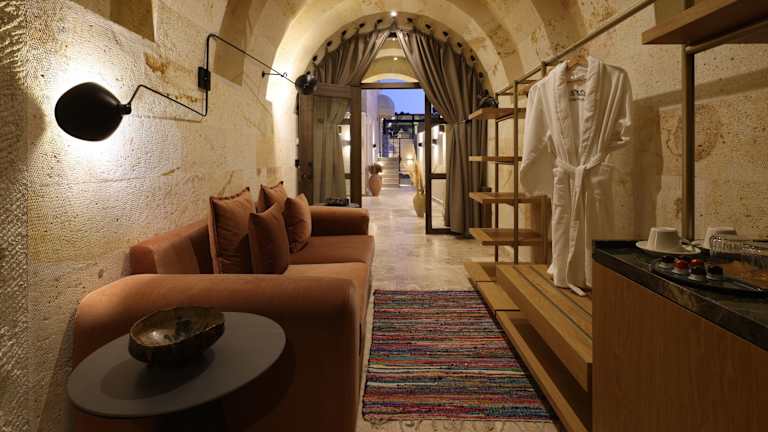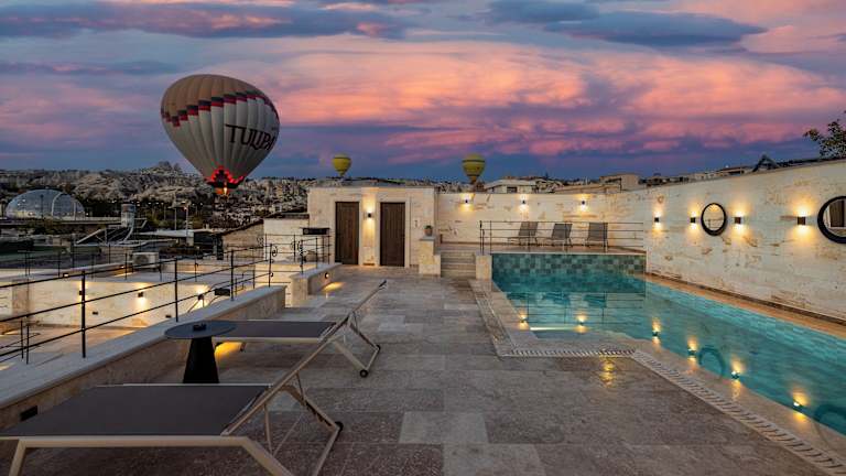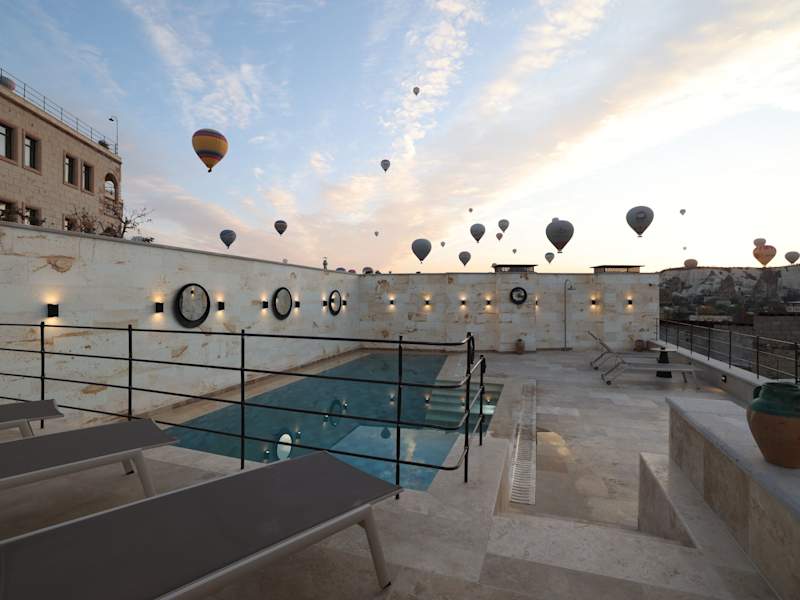 Mare Cappadocia bietet kostenloses WLAN und verfügt über einen saisonalen Aussenpool, einen Garten und eine Terrasse. Die Unterkunft ist modernes und raffinierte gestaltet und bietet zahlreiche Annehmlichkeiten.