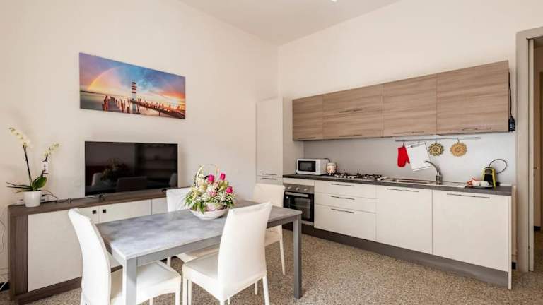 Die Ferienwohnung verfügt über 1 Schlafzimmer, ein gemütliches Wohnzimmer, eine voll ausgestattete Küche mit Kühlschrank und Kaffeemaschine sowie ein Badezimmer, das mit einem Bidet und einer Dusche ausgestattet ist. Handtücher und Bettwäsche werden bereitgestellt.