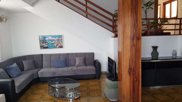 Das Ferienhaus umfasst insgesamt 4 Schlafzimmer, ein Wohnzimmer mit einem Flachbild-TV, eine Terrasse mit Meerblick sowie ein Badezimmer, das ein Bidet beinhaltet. Eine Kaffeemaschine steht ebenfalls zur Verfügung.