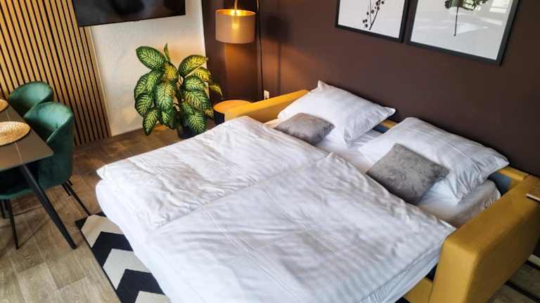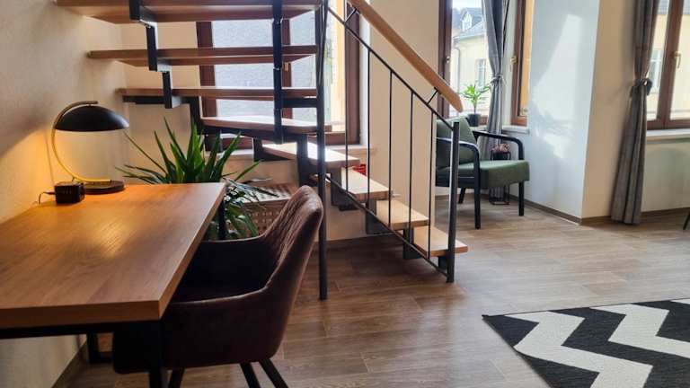 Das maremar - Design Maisonette Altstadt ist eine einladende Ferienwohnung, die eine geschmackvolle Einrichtung und eine angenehme Atmosphäre bietet. Es handelt sich um eine Maisonette, die Platz für bis zu 4 Personen bietet und über ein luxuriöses Boxspringbett verfügt.
