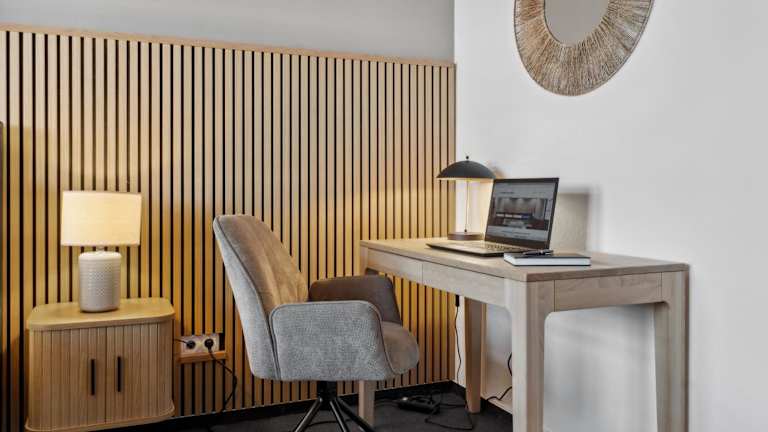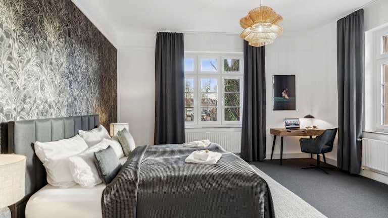 Die Unterkunft umfasst 134 qm und bietet zwei Schlafzimmer mit luxuriösen Boxspringbetten. Es gibt eine voll ausgestattete Küche und Arbeitsplätze mit Highspeed-Wifi. Einige Einheiten verfügen über eine Terrasse und/oder einen Balkon mit Stadtblick.