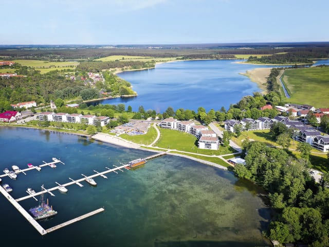 Entdecken Sie das weitläufige Resort mit 184 stilvollen Appartements, eigener Marina, Restaurant, Sport und Wellness. Die Landschaft der mecklenburgischen Seenplatte macht Lust auf lange Spaziergänge, Wanderungen, Rad- und Bootstouren. Entdecken Sie Flora und Fauna auf Wasser und zu Land. Fahren Sie mit dem Rad durch den Müritz-Nationalpark oder schippern Sie mit dem Boot den Wellen der Müritz entgegen. Oder möchten Sie einfach mal nichts tun? Entspannen Sie im beheizten Außenpool. Trainieren Sie nach Belieben im Fitnessbereich und verwöhnen Sie Ihren Körper anschließend bei regenerierenden Saunagängen. Mediterrane Speisen finden Sie im Restaurant „Bella Riva“, zentral im Herzen des Resorts gelegen. Der einzigartige Blick zur Müritz ist genauso unvergesslich wie die Farbenspiele des Himmels und seine Sonnenuntergänge. Trinken Sie Ihren Wein auf dem Balkon Ihres Appartements oder im Strandkorb am Ufer der Müritz…