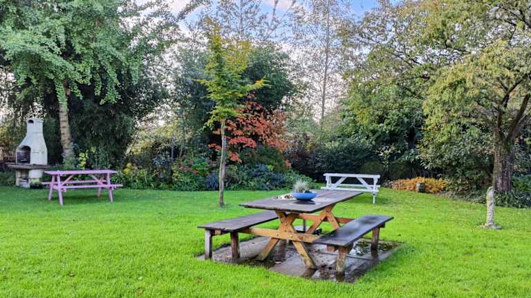In der Unterkunft wird ein kontinentales, vegetarisches oder veganes Frühstück angeboten. Es stehen Grillmöglichkeiten zur Verfügung und die Gäste können im Garten oder in der Gemeinschaftslounge entspannen. Bei speziellen Ernährungsbedürfnissen können entsprechende Speisen auf Anfrage zubereitet werden.