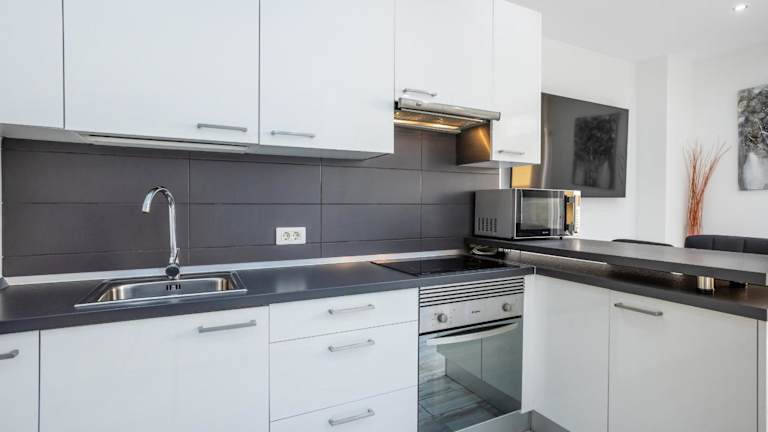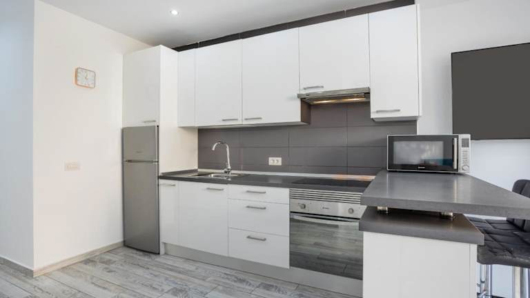 Diese Ferienwohnung verfügt über ein Schlafzimmer, ein Wohnzimmer und eine voll ausgestattete Küche mit Kühlschrank und Kaffeemaschine. Ein Badezimmer mit Dusche ist ebenfalls vorhanden. Zur Ausstattung gehören Handtücher und Bettwäsche. Die Ferienwohnung hat Klimaanlage und einen Balkon.
