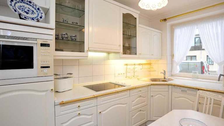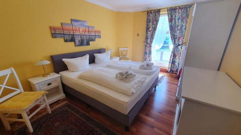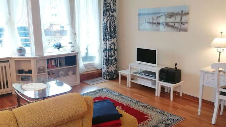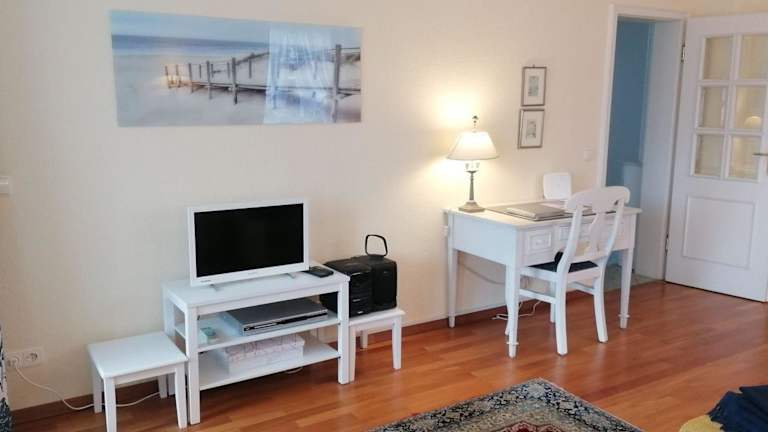 Die Ferienwohnung verfügt über ein Schlafzimmer, ein Wohnzimmer mit TV, sowie eine voll ausgestattete Küche mit Kühlschrank und Geschirrspüler. Zudem enthält sie ein Badezimmer mit Dusche. Handtücher und Bettwäsche werden bereitgestellt.