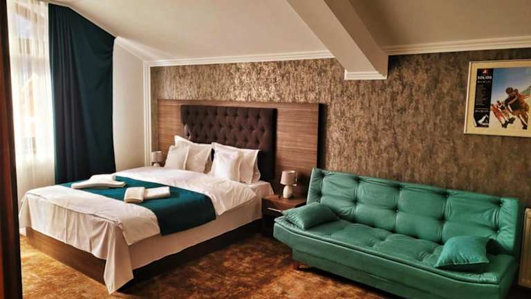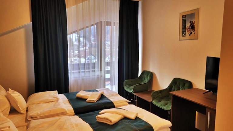 Jeden Morgen wird ein frisches Frühstück serviert, das auf Anfrage auch im Zimmer genossen werden kann. Das À-la-carte-Restaurant des Hotels serviert traditionelle rumänische Gerichte. Nach einem langen Skitag lädt die Hotelbar zum Entspannen ein.
