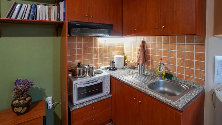 Das Studio verfügt über ein Schlafzimmer und ein Badezimmer, das mit einer Dusche und einem Haartrockner ausgestattet ist. Die Küchenzeile beinhaltet einen Kühlschrank. Die Unterkunft ist klimatisiert und bietet Nichtraucherzimmer.