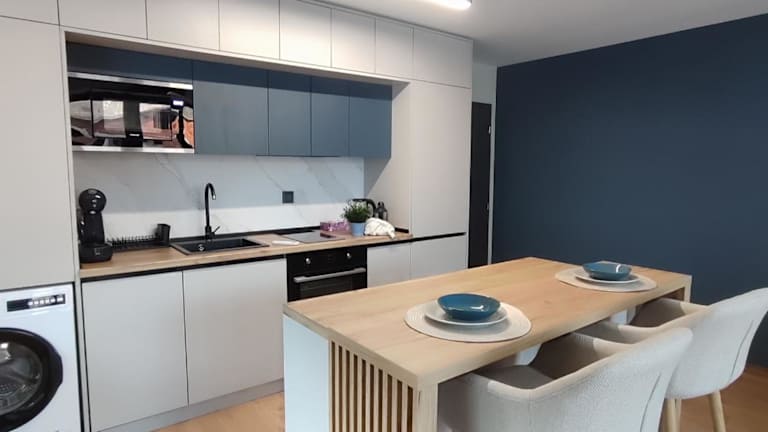 Die voll ausgestattete Küche der MariGold Apartments ermöglicht eine selbständige Zubereitung von Mahlzeiten. Zu den Ausstattungselementen gehören ein Kühlschrank, Geschirrspüler, Herdplatte, Mikrowelle sowie eine Kaffeemaschine und ein Wasserkocher. Gäste haben somit die Möglichkeit, ihre eigenen kulinarischen Kreationen zu verwirklichen.