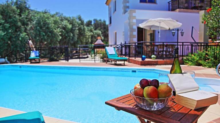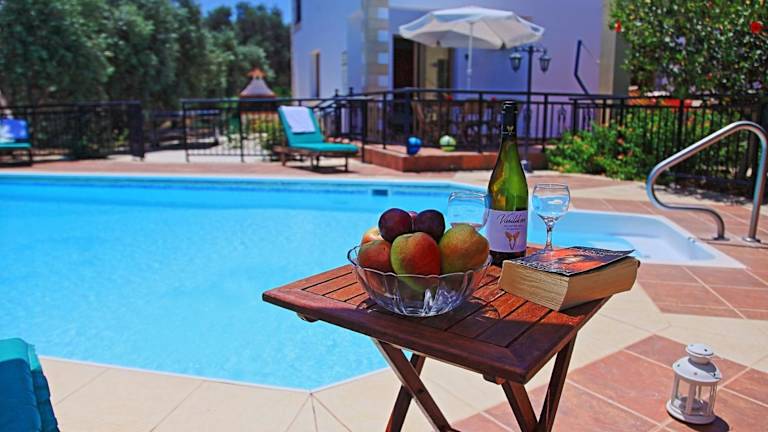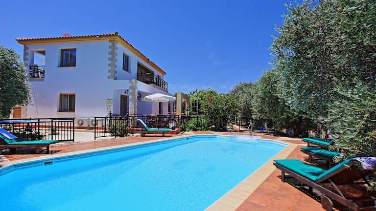 Die Villa verfügt über Tischtennis und ein Wasserspielzeug für Kinder. Der Aussenpool kann ganzjährig genutzt werden, und es gibt einen Nichtschwimmerbereich sowie eine Poolabdeckung. Aktivitäten wie Velofahren und Strandbesuche sind ebenfalls in der Umgebung möglich. Für Golfliebhaber ist der Golfplatz Minthis Hill in der Nähe.