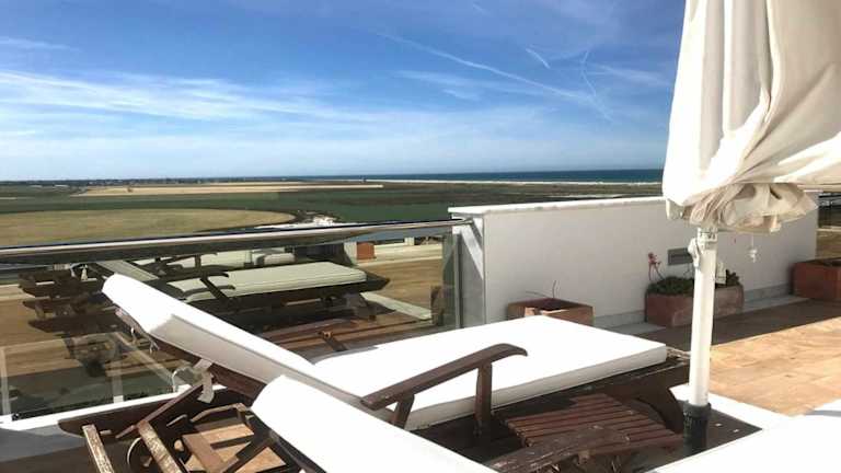 Die Unterkunft Marina 1 Atico de Lujo Vistas al mar Piscina befindet sich in Conil de la Frontera, nur 1,6 km vom Strand Playa De Los Bateles entfernt. Die Umgebung bietet zahlreiche Freizeitmöglichkeiten, darunter Golfplätze wie den Novo Sancti Petri Golf in 18 km Entfernung und den Benalup Golf & Country Club in 35 km. Der Flughafen Jerez ist 68 km von der Unterkunft entfernt.