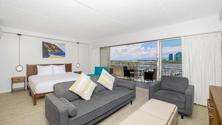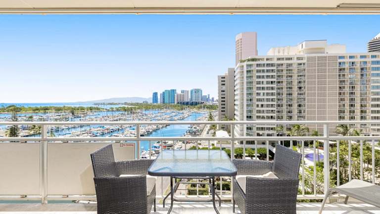 Marina Views Studio - Ilikai, 941 bietet klimatisierte Zimmer mit TV und Balkonen, die einen Blick auf den Fluss bieten. Die Unterkunft verfügt über einen Aussenpool und bietet Bergblicke. Es sind Nichtraucherzimmer vorhanden, und die Einrichtung legt Wert auf Sicherheit mit Feuerwehrlösungs- und Rauchmeldesystemen. Es gelten ruhige Stunden von 22:00 bis 8:00 Uhr. Zur Anreise sind eine Identifikation und eine Kreditkarte erforderlich.