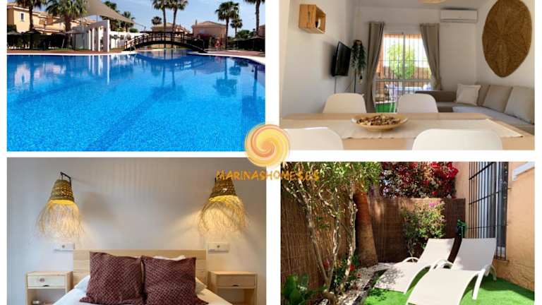 Marinas Sol - Tu hogar con jardín privado! bietet eine komfortable Unterkunft mit Stadt- und Bergblick. Die Ferienwohnung verfügt über einen eigenen Garten und eine Terrasse sowie einen Aussenpool, der zum Entspannen einlädt. Die rund um die Uhr besetzte Rezeption spricht Englisch und Spanisch.