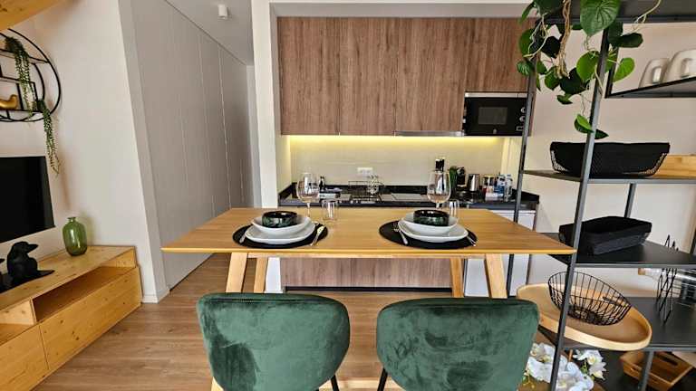Die Ferienwohnung verfügt über ein Schlafzimmer, einen TV mit Satellitenkanälen, eine gut ausgestattete Küche mit Kühlschrank und Mikrowelle sowie ein Badezimmer mit Dusche. Handtücher und Bettwäsche werden bereitgestellt.