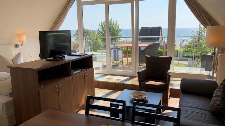 Maris Ferienwohnung Nr 47 ist eine Ferienwohnung direkt am Strand mit einem Balkon und Meerblick. Die Unterkunft bietet kostenlosen Privatparkplatz und kostenloses Wifi.