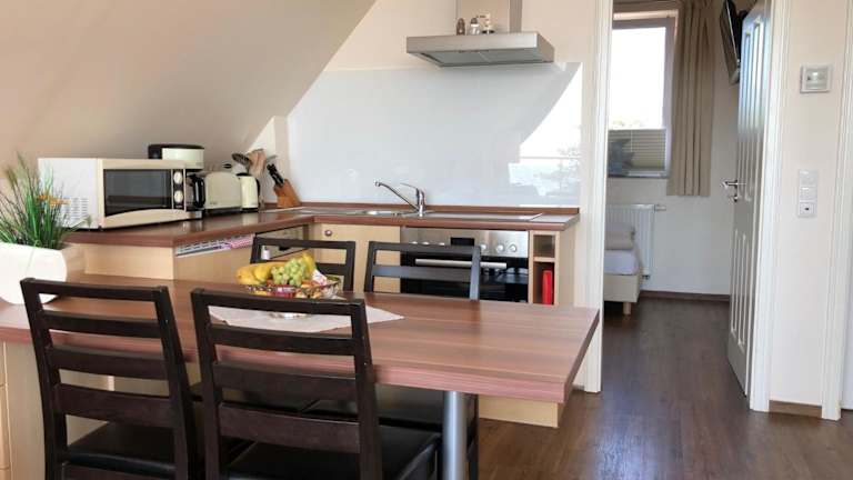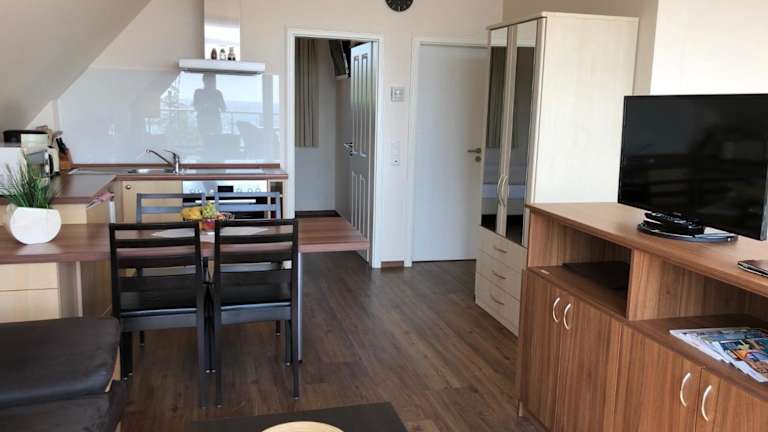 Die Ferienwohnung verfügt über 1 Schlafzimmer, ein Wohnzimmer mit Flachbild-TV, eine gut ausgestattete Küchenzeile mit Kühlschrank und Geschirrspüler sowie 1 Badezimmer mit Dusche. Handtücher und Bettwäsche werden bereitgestellt.
