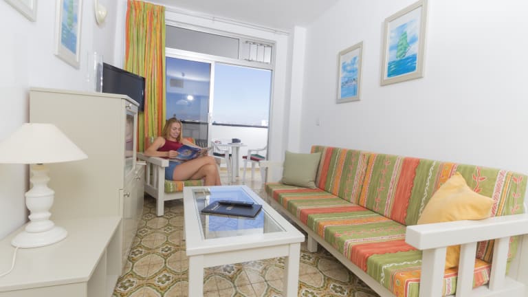 o Standart Appartements und Einzelzimmer befinden sich in den Etagen 1 – 2 Die Appartements sind ansprechend ausgestattet und verfügen über Wohnraum, Bad, Dusche, WC, seperatem Schlafraum, amerikanische Küche, Sat TV ,WIFI kostenlos, Telefon, Radio, Balkon , Alle Zimmer wurden 2017 renoviert.Alle Zimmer haben Klimaanlage auch als Heizung ( Splitter) o Superior Appartements befinden sich in den Etagen 3 – 5 im Hauptgebäude Gleiche Ausstattung wie Standart Appartement ( einige mit verglastem Balkon), zusätzlich Gratis Kaffeemaschine, Wasserkocher, Ventilator, Fön, Sat TV Flat Screen, WIFI kostenlos, Sauna, eine Flasche spanischen Rotwein zur Begrüssung, teilweise Meerblick. Die Appartements wurden im Jahr 2018 renoviert. Klimaanlage auch als Heizung ( Splitter) in diesen Zimmern vorhanden und immer inclusive. o Deluxe Appartments befinden sich in der 6 - 8 Etage im Hauptgebäude . Diese Zimmer sind bei Pauschalreisen nur als Doppelzimmer buchbar Gleiche Ausstattung wie Superior Appartement ( einige mit verglastem Balkon), zusätzlich Gratis Kaffeemaschine, Wasserkocher, Ventilator, Fön, Sat TV Flat Screen, WIFI kostenlos, Sauna, eine Flasche spanischen Rotwein zur Begrüssung, teilweise Meerblick. Die Appartements wurden im Jahr 2019 renoviert. Klimaanlage auch als Heizung ( Splitter) in diesen Zimmern vorhanden und immer inclusive.