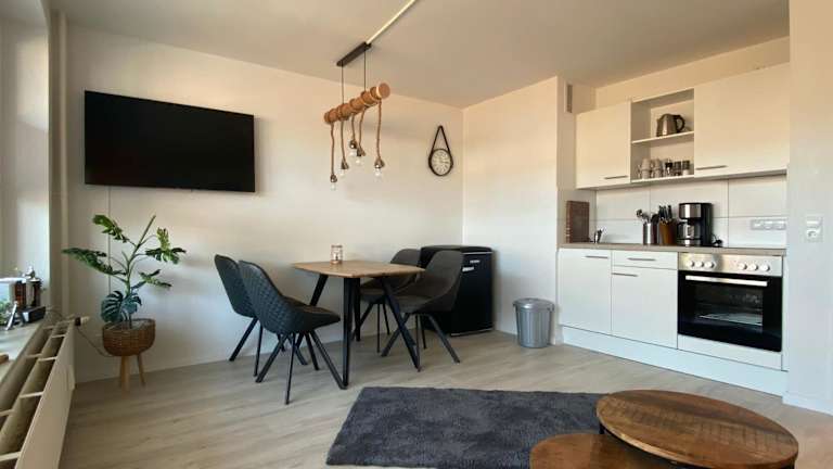 Die Ferienwohnung ist mit einer Küche ausgestattet, die einen Kühlschrank und einen Ofen beinhaltet. Eine Möglichkeit, Handtücher und Bettwäsche erhältlich, besteht gegen Aufpreis.