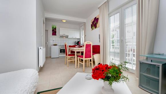 Marko Apartmani bietet eine heimelige Unterkunft in ruhiger Lage mit einem schönen Garten. Diese Nichtraucherunterkunft wurde 2005 erbaut und umfasst klimatisierte Zimmer sowie einen kostenlosen Privatparkplatz für Gäste, die mit dem Auto anreisen. Die Unterkunft ermöglicht einen problemlosen Check-in zwischen 14:00 und 22:00 sowie einen Check-out von 06:00 bis 10:00. Die Unterkunft ist ideal für Familien, da Familienzimmer zur Verfügung stehen. Nach Sicherheitsrichtlinien werden besondere Hygienevorkehrungen getroffen.