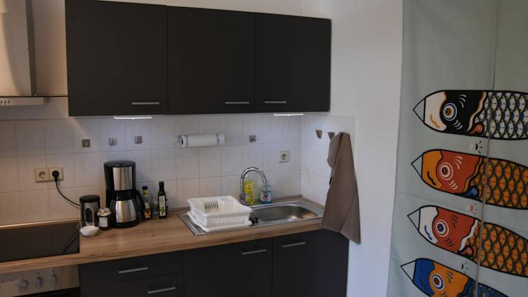 Die Ferienwohnung umfasst ein Schlafzimmer sowie ein Badezimmer mit Badewanne. Zur Ausstattung gehört ein Flachbild-TV mit Kabelkanälen und eine gut ausgestattete Küche mit Kühlschrank und Ofen. Des Weiteren sind WLAN und Heizung verfügbar, und gesprochene Sprachen sind Deutsch, Englisch (Vereinigtes Königreich) und Französisch.