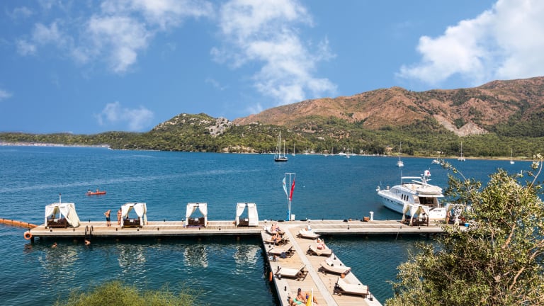 Mit direktem Strandzugang am Ägäischen Meer, kristallklarem Wasser und üppig grünen Bergen im Hintergrund ist unser Marmaris Bay Resort mit seinen 281 Zimmern das Paradies mit einem Konzept nur für Erwachsene ab 16 Jahren, die sich nach einem perfekten Urlaub sehnen. Die Pinienwälder, das Landschaftsbild, der Duft des Pflanzenreichtums sowie die kühle Meeresbrise erschaffen ein Cocktail für alle Sinne, der die Gäste während ihres gesamten Aufenthalts jederzeit in Entspannung tauchen lässt. Dieses einzigartige Resort bietet seinen Gästen die Möglichkeit, sich mit allen Sinnen durch ein Premium-All-Inclusive-Erlebnis zu verwöhnen. Zur Einrichtungen zählen ein Pool im Freien, der zum Entspannen einlädt, sowie ein Privatstrand und Badestege am Meer. Auf unseren Sonnenliegen räkeln sich unsere Gäste unter den warmen Strahlen und lassen sich mit erfrischenden Getränken verwöhnen, während sie den Sonnenuntergang beobachten. Der Marmaris Bay Resort bietet außerdem ein Spa mit sinnlichen Behandlungen sowie verschiedene Wassersportarten für Aktivurlauber. Wir sind uns bewusst, dass Haustiere für viele Familien einen bedeutenden Platz einnehmen. Daher bieten wir Unterkünfte an, die auf die Bedürfnisse von Haustieren zugeschnitten sind. Unsere Haustierrichtlinien und das spezielle Begrüßungsset für Haustiere wurden entwickelt, um das Wohlergehen und die Freude unserer Gäste und ihrer pelzigen Begleiter zu gewährleisten. Egal, ob Sie mit einem kleinen Hund oder einer freundlichen Katze anreisen, unser engagiertes Team wird Ihren Aufenthalt bei uns unvergesslich machen. *Vor der Buchung bitten wir Sie, sich mit unseren Haustierrichtlinien vertraut zu machen. Für nähere Informationen und eventuelle Ausnahmen während bestimmter Saisonzeiten wenden Sie sich bitte an unsere Reservierungsabteilung.