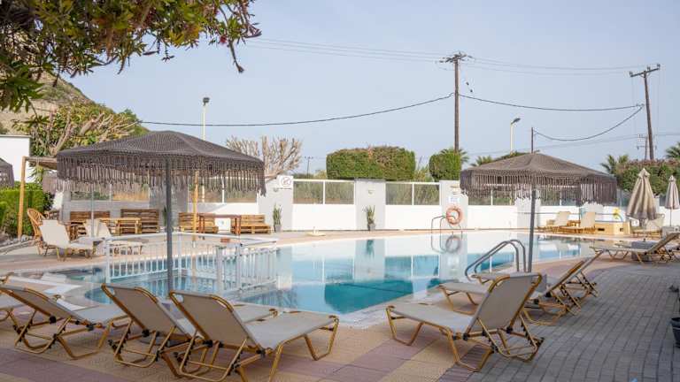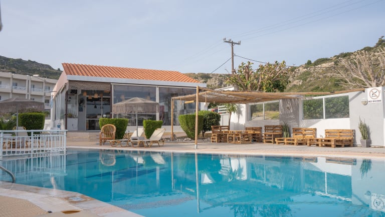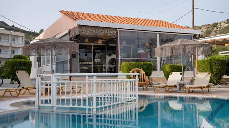 Die Unterkunft verfügt über ein Restaurant, in dem griechische sowie italienische Gerichte wie Pizza serviert werden. An der Bar können die Gäste Cocktails geniessen. Das Frühstück wird wahlweise als Buffet oder als kontinentales Frühstück an der Snackbar am Pool angeboten.