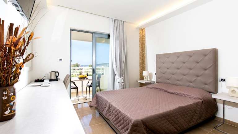 Jedes Zimmer in der Unterkunft Maroula Blue Studios & Suites ist ausgestattet mit Klimaanlage, Kleiderschrank, Flachbild-TV, eigenem Badezimmer, Bettwäsche, Handtüchern und einem Balkon mit Blick auf den Pool oder das Meer. Zudem sind die Zimmer mit einem Kühlschrank und einem Wasserkocher ausgestattet.