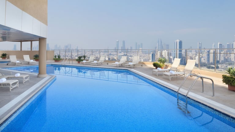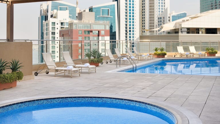 Das Hotel befindet sich im Bezirk Juffair, etwa 20 Minuten Fahrt vom internationalen Flughafen Bahrain entfernt. In der Nähe befinden sich Einkaufsmöglichkeiten, darunter ein Supermarkt, sowie der Manama Souk, der 5,5 km entfernt liegt. Der Gästepalast Gudaibiya ist 1,5 km vom Hotel entfernt.