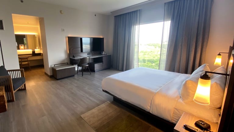 Die Zimmer sind mit Klimaanlage und Heizung ausgestattet. Jedes Zimmer verfügt über ein Doppelbett, ein Sofabett, eine Minibar, einen Safe und einen Schreibtisch. Zudem haben die Gäste Zugang zu einem Kühlschrank, einer Mikrowelle und einer Tee-/Kaffeemaschine. Weitere Annehmlichkeiten sind Sat-TV, Radio und ein Wecker. In den Badezimmern sind eine Dusche, Haartrockner und Kosmetikartikel vorhanden. Es sind auch rollstuhlgerechte Zimmer buchbar.