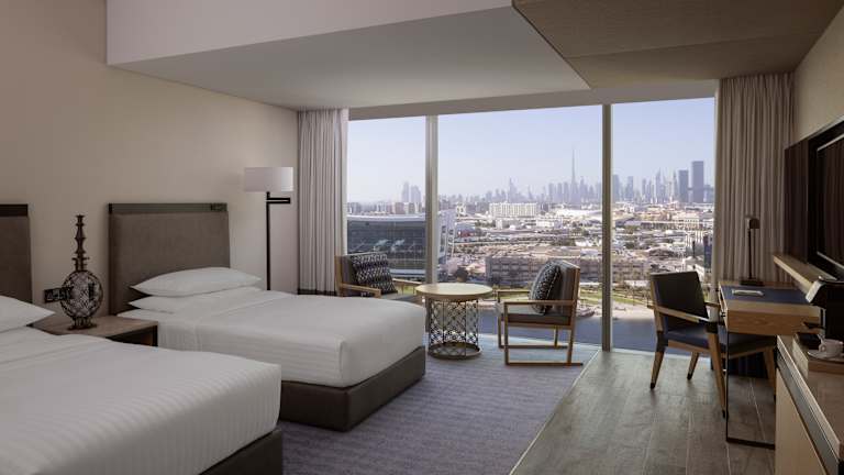 Entdecken Sie das neu eröffnete Marriott Marquis Dubai Creek– ein erstklassiges Hotel nahe dem Flughafen Dubai, gelegen im lebendigen Jewel of the Creek und nur wenige Minuten von Downtown entfernt. Unsere modernen Zimmer sind stilvoll gestaltet und bieten Komfort, großzügige Raumaufteilung sowie beeindruckende Ausblicke auf die Skyline oder den ruhigen Dubai Creek. Wählen Sie aus 15 Zimmerkategorien, darunter 1-, 2- und 3-Schlafzimmer-Apartments – ideal für Familien, Geschäftsreisende oder längere Aufenthalte – mit voll ausgestatteter Küche und modernen Annehmlichkeiten. Als geschätzter Gast genießen Sie exklusiven Zugang zu einem Konferenzbereich mit hochmodernen Meetingräumen, einem Fitnessstudio, Außenpool und einem erstklassigen Spa mit marokkanischem Hammam. Lassen Sie sich in unseren sechs Restaurants und Lounges kulinarisch verwöhnen. Buchen Sie jetzt und erleben Sie den perfekten Mix aus Stil, Komfort und Lage im Herzen von Dubai.