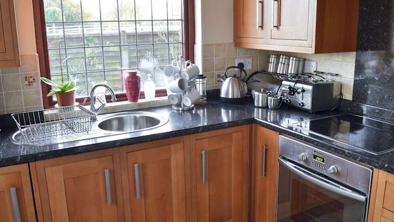 Das Ferienhaus bietet drei Schlafzimmer, einen TV und eine gut ausgestattete Küche. Zudem stehen ein Badezimmer mit Dusche sowie Handtücher und Bettwäsche zur Verfügung.