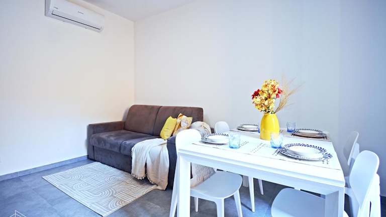 Die Ferienwohnung verfügt über ein separiertes Schlafzimmer, ein Wohnzimmer sowie eine voll ausgestattete Küchenzeile, die den Gästen die Möglichkeit bietet, selbst zu kochen. Zudem ist die Unterkunft klimatisiert und bietet ein Badezimmer. Handtücher und Bettwäsche können gegen Aufpreis zur Verfügung gestellt werden.