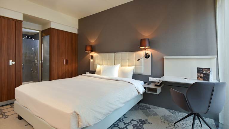 Die klimatisierten Zimmer sind mit einem Doppelbett, einem Queensize-Bett oder einem Kingsize-Bett ausgestattet. Zustellbetten stehen auf Anfrage zur Verfügung. Zur Einrichtung gehören ein Kühlschrank, ein Telefon, ein Flachbild-TV, ein Wasserkocher, ein Safe sowie ein eigenes Badezimmer mit Dusche. Zudem sind rollstuhlgerechte Zimmer mit barrierefreier Ausstattung verfügbar. Das Hotel bietet Nichtraucherzimmer.