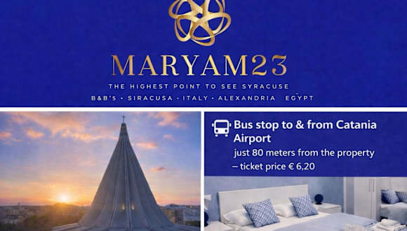 Die Unterkunft Maryam23 befindet sich in Syrakus, unweit des Kleinen Strands Syrakus, des Parco Archeologico della Neapoli und des Porto Piccolo. Die Lage ermöglicht einfache Erreichbarkeit diverser Strandabschnitte wie Strand Aretusa und Strand Cala Rossa, die 2,3 km beziehungsweise 2,5 km entfernt sind. Der nächstgelegene Flughafen ist der Flughafen Catania Fontanarossa, der in einer Distanz von 63 km zu finden ist.