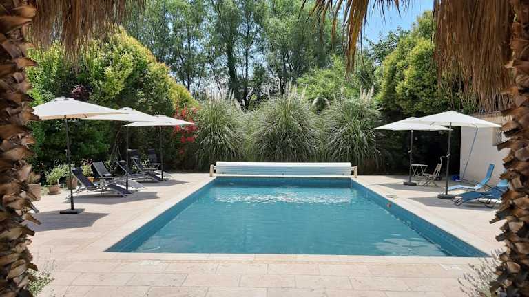 Mas des Cigognes bietet klimatisierte Übernachtungsmöglichkeiten mit kostenlosem Wifi sowie Zugang zu einer Terrasse. Die Unterkunft hat einen Garten und ermöglicht den Zugang zu einem Aussenpool.