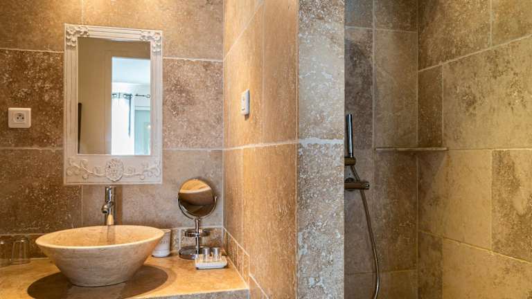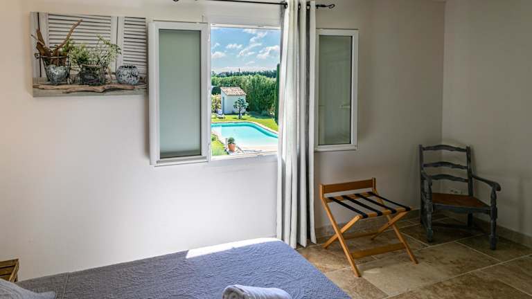 Die klimatisierte Suite im Mas Saint Julien bietet einen Blick auf den Pool und ist mit einem TV ausgestattet. Das Badezimmer verfügt über eine Dusche, einen Haartrockner und kostenlose Pflegeprodukte.