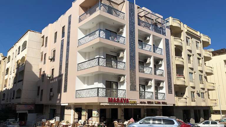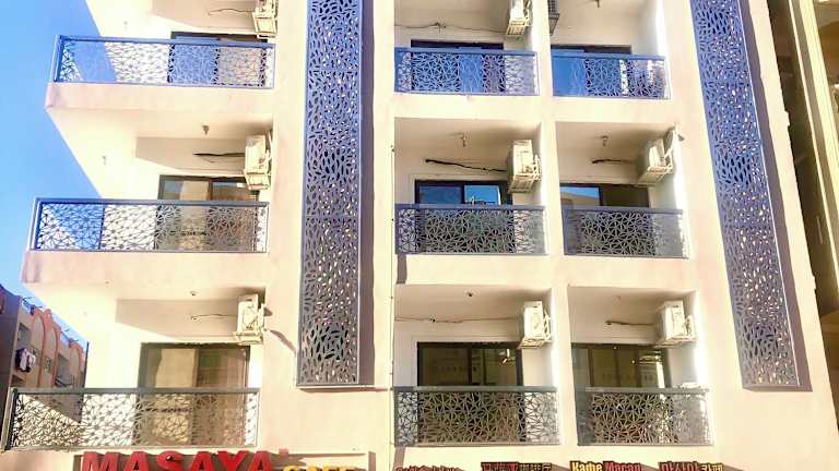 Das Masaya Hurghada befindet sich im Herzen von Hurghada City, nur 800 m von der Küstenlinie entfernt. Diverse Sehenswürdigkeiten wie der Busbahnhof (1,5 km), die alten Dahar Souvenirs Shops (3 km) und der Saqala-Platz (2 km) sind bequem erreichbar. Der Fährhafen liegt ebenfalls nur 1,5 km entfernt. Der internationale Flughafen Hurghada ist 8 km von der Unterkunft entfernt.