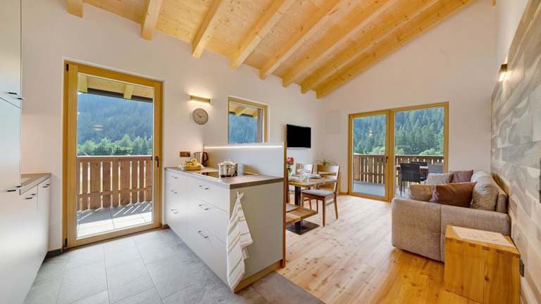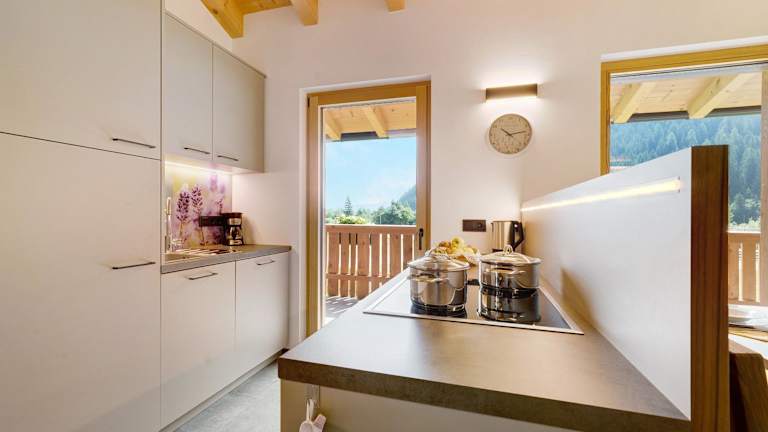 Die Ferienwohnung bietet Platz für bis zu vier Personen mit zwei Schlafzimmern, einem Wohnzimmer mit einem TV und einer gut ausgestatteten Küche mit Kühlschrank und Geschirrspüler. Das Badezimmer beinhaltet eine Dusche. Handtücher und Bettwäsche werden zur Verfügung gestellt. Zudem haben Gäste Zugang zu einem Balkon mit Bergblick.