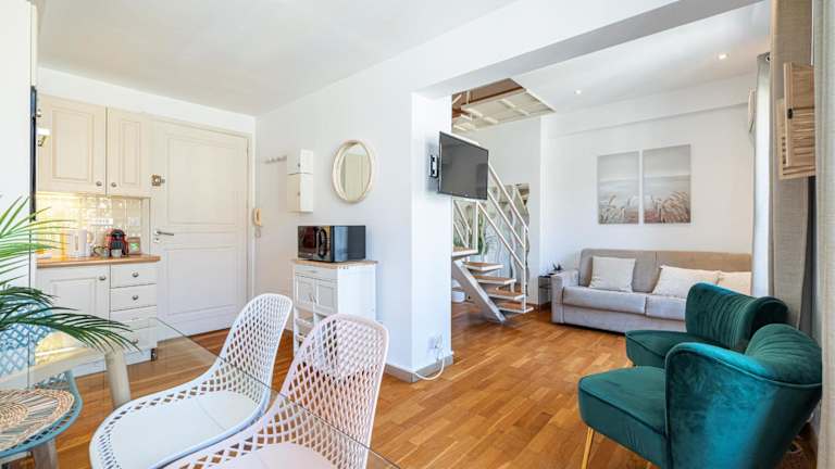 Die Unterkunft Massena Street - 1 Bdr Duplex with AC & Parking befindet sich im Zentrum von Nizza. In der Nähe sind interessante Orte wie die Strände Plage du Ruhl, Plage du Centenaire und Lido Plage sowie die Avenue Jean-Medecin.