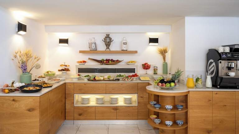Das Hotel bietet verschiedene gastronomische Einrichtungen wie ein Restaurant, einen Speiseraum, ein Café und eine Bar. Ein reichhaltiges Frühstücksbuffet wird täglich im eleganten Speisebereich serviert. Gästen stehen rund um die Uhr Kaffee, Tee, Obst und Kuchen in der Lobby zur Verfügung.