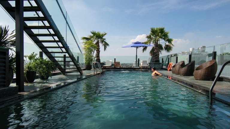Die Lage ist mitten in der Stadt. Das Highlight ist hier ganz klar der Pool auf der Dachterasse, bei dem man einen Ausblick auf die ganze Stadt hat. Besonders hervorzuheben ist die Ehrlichkeit der Menschen die dort arbeiten: Beim Check-In haben wir unsere Kreditkarte verloren, die hinter die Rezeption gefallen ist. 15 Minuten später rief man uns an, dass sie unter wieder gefunden wurde und wir sie wieder abholen können.